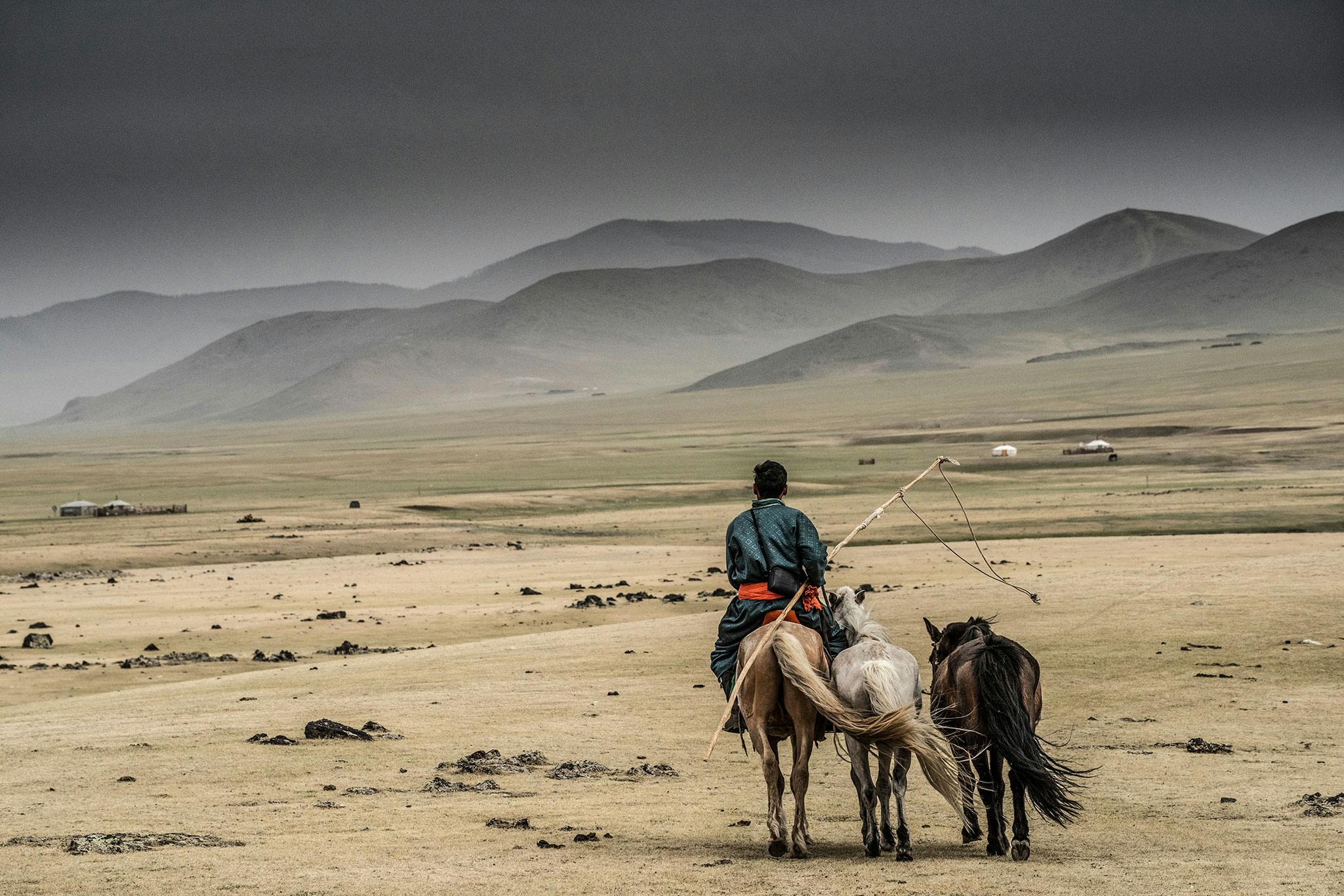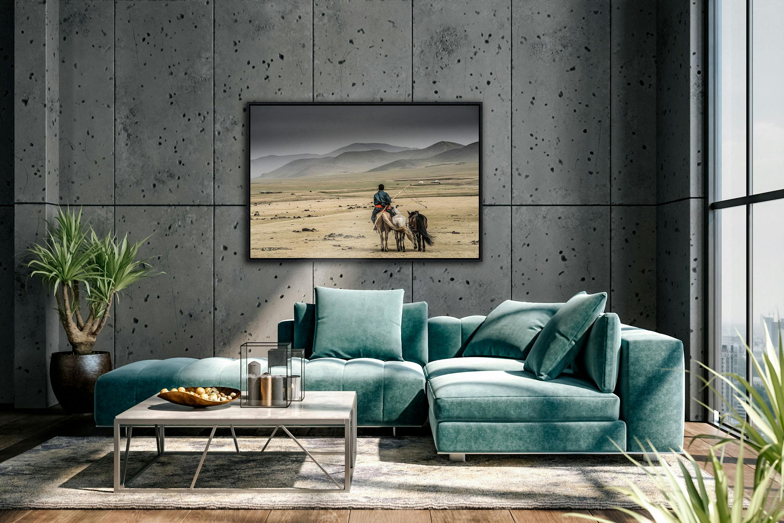 Retour, Mongolie, par Arnaud Marchais. Tirage Fine Art contrecollé alu et caisse américaine.