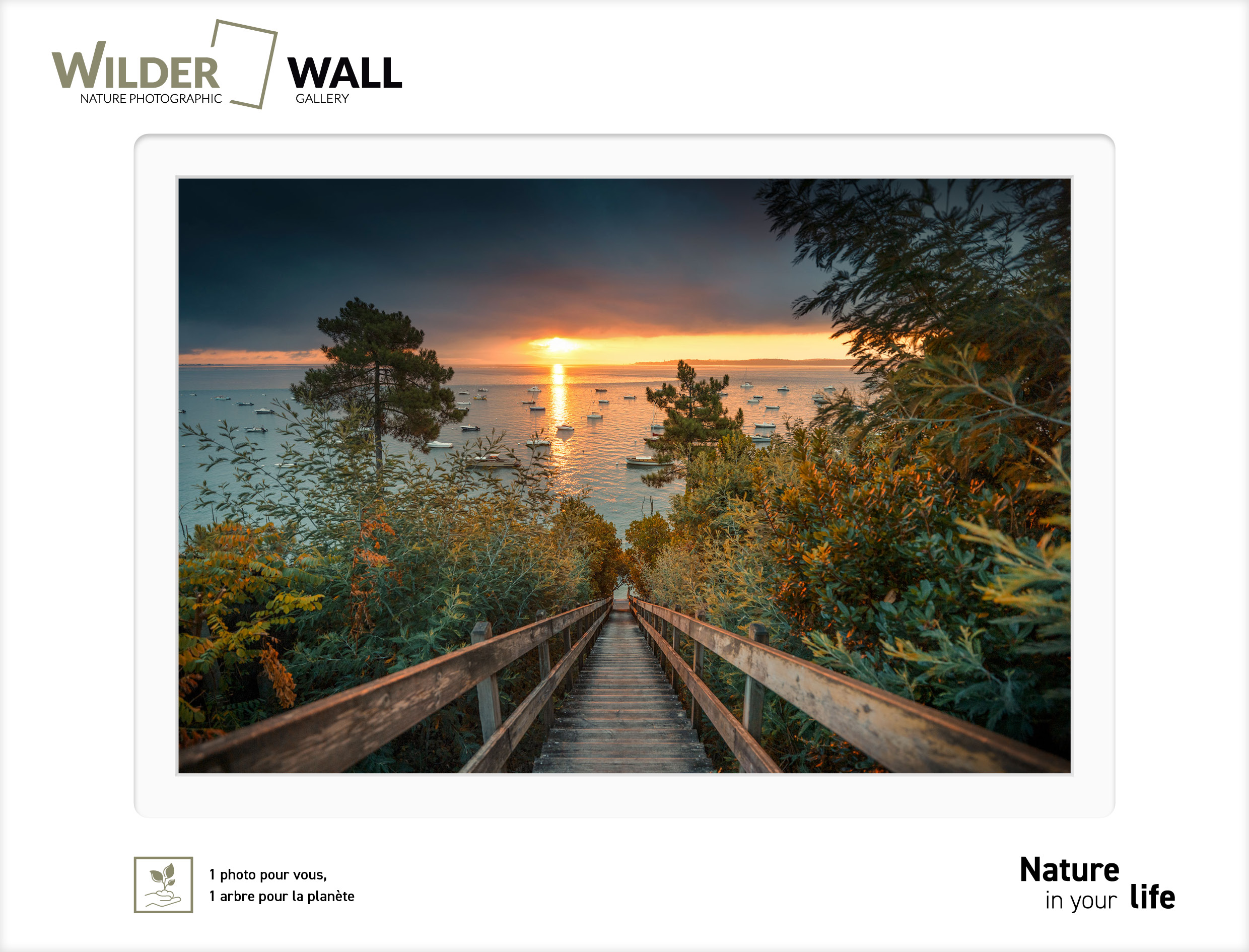 Votre photographie prête à encadrer avec son passe-partout dans sa jolie pochette Wilder Wall. Ouvrez, encadrez, accrochez !